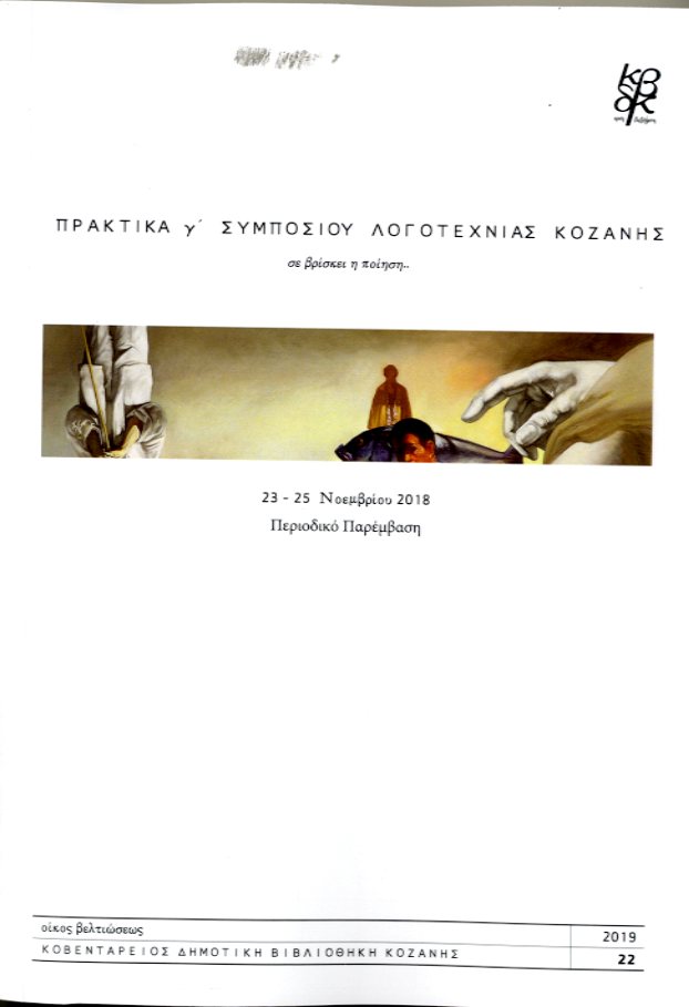 Τα “ΠΡΑΚΤΙΚΑ γ΄ ΣΥΜΠΟΣΙΟΥ ΛΟΓΟΤΕΧΝΙΑΣ ΚΟΖΑΝΗΣ - σε βρίσκει η ποίηση”, με τιμώμενο πρόσωπο τον ποιητή Τίτο Πατρίκιο, περιέχουν τις 41 εισηγήσεις- ομιλίες που έγιναν στο Γ΄ Συμπόσιο Λογοτεχνίας του περιοδικού Παρέμβαση, στο οποίο η Κ.Δ.Β.Κ. ήταν συνδιοργανωτής και το φιλοξένησε στο αμφιθέατρο του νέου της κτιρίου, από τις 23 μέχρι τις 25 Νοεμβρίου 2018.