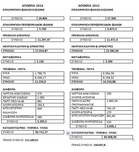 Οικονομικός απολογισμός της Αποκριάς