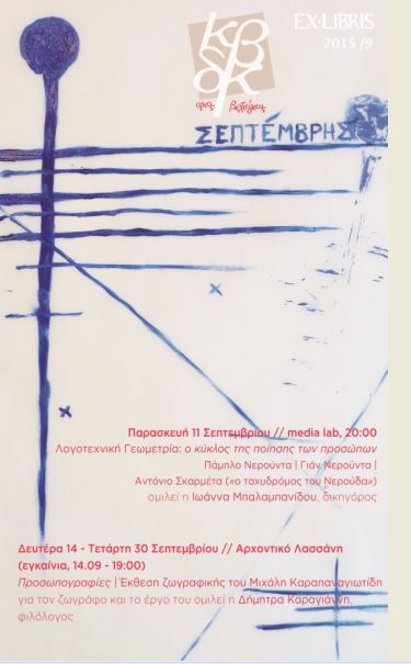 Ομιλία για τον Χιλιανό ποιητή Πάμπλο Νερούντα στην Κοβεντάρειο Δημοτική Βιβλιοθήκη Κοζάνης.
