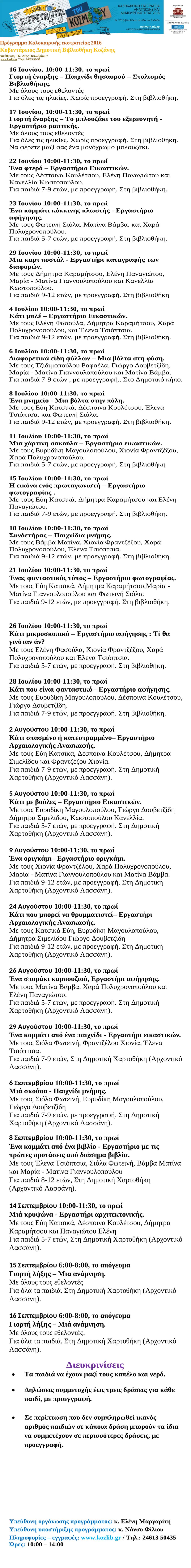 Πρόγραμμα Καλοκαιρινής Εκστρατείας Ανάγνωσης και Δημιουργικότητας 2016