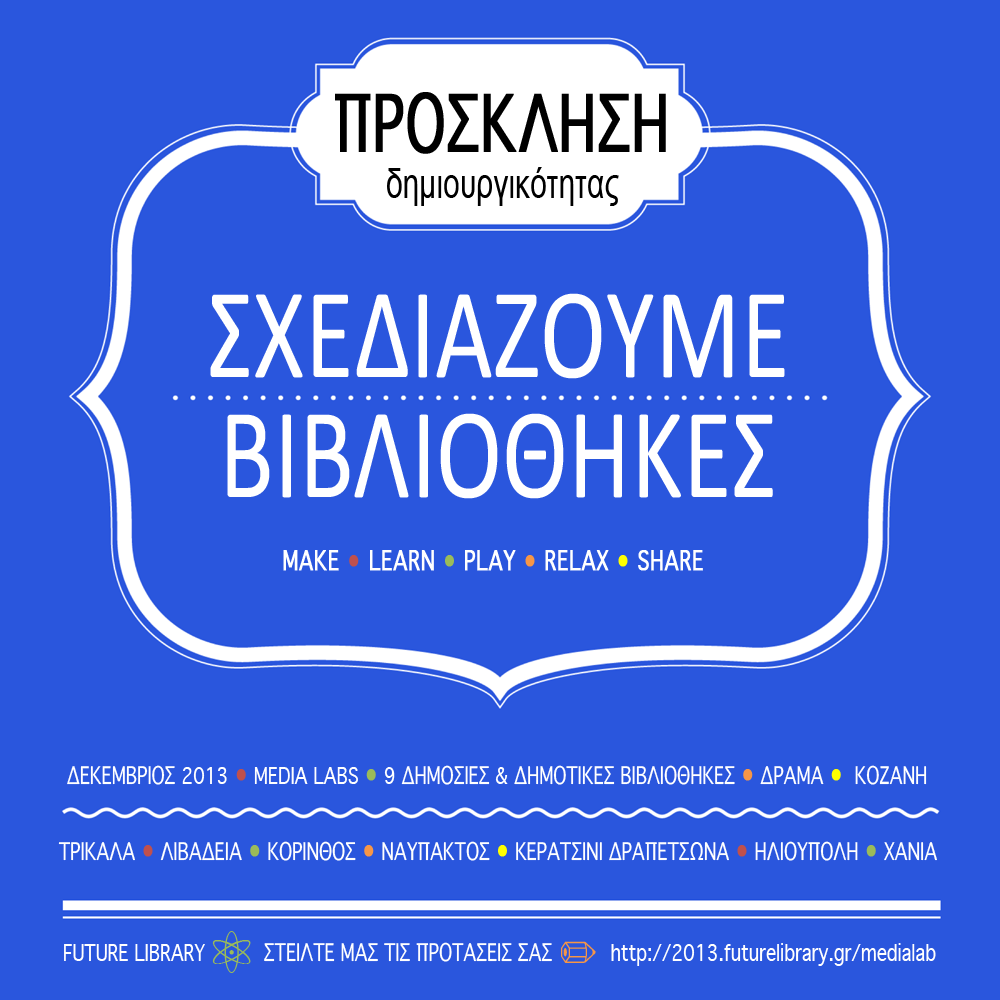 Η πρόσκληση έχει ανακοινωθεί εδώ: http://2013.futurelibrary.gr/medialab.