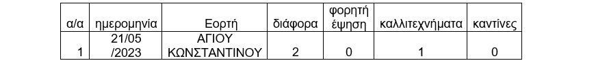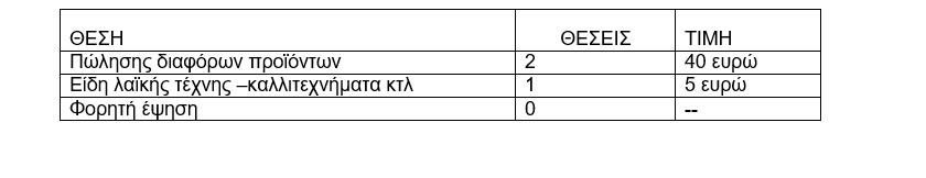 Καλούμε τους ενδιαφερόμενους εκθέτες που επιθυμούν να συμμετάσχουν στην υπαίθρια αγορά που απεικονίζεται στον παρακάτω πίνακα