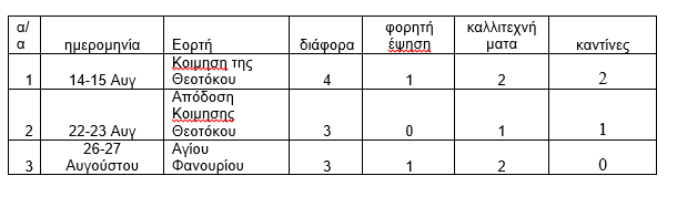 α/α ημερομηνία Εορτή διάφορα φορητή έψηση καλλιτεχνήματα καντίνες