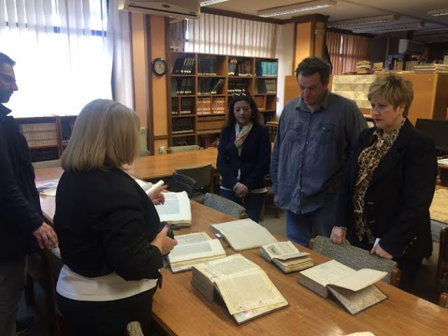 Το Σάββατο το πρωί η κα Κόλλια-Τσαρουχά, επισκέφτηκε την Κοβεντάρειο Δημοτική Βιβλιοθήκη Κοζάνης, όπου είχε την ευκαιρία να δει από κοντά τους τόμους, χάρτες και έγγραφα υψηλής ιστορικής και πολιτιστικής αξίας, τα οποία διαθέτει.