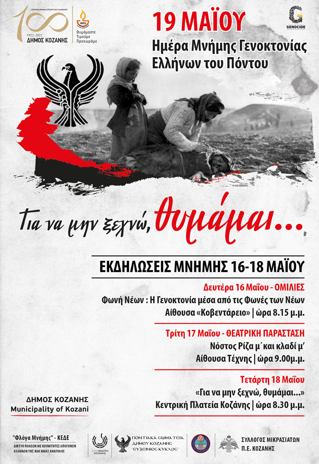 Τριήμερο πρόγραμμα εκδηλώσεων για την 19η Μαΐου- Ημέρα Μνήμης Γενοκτονίας Ελλήνων του Πόντου