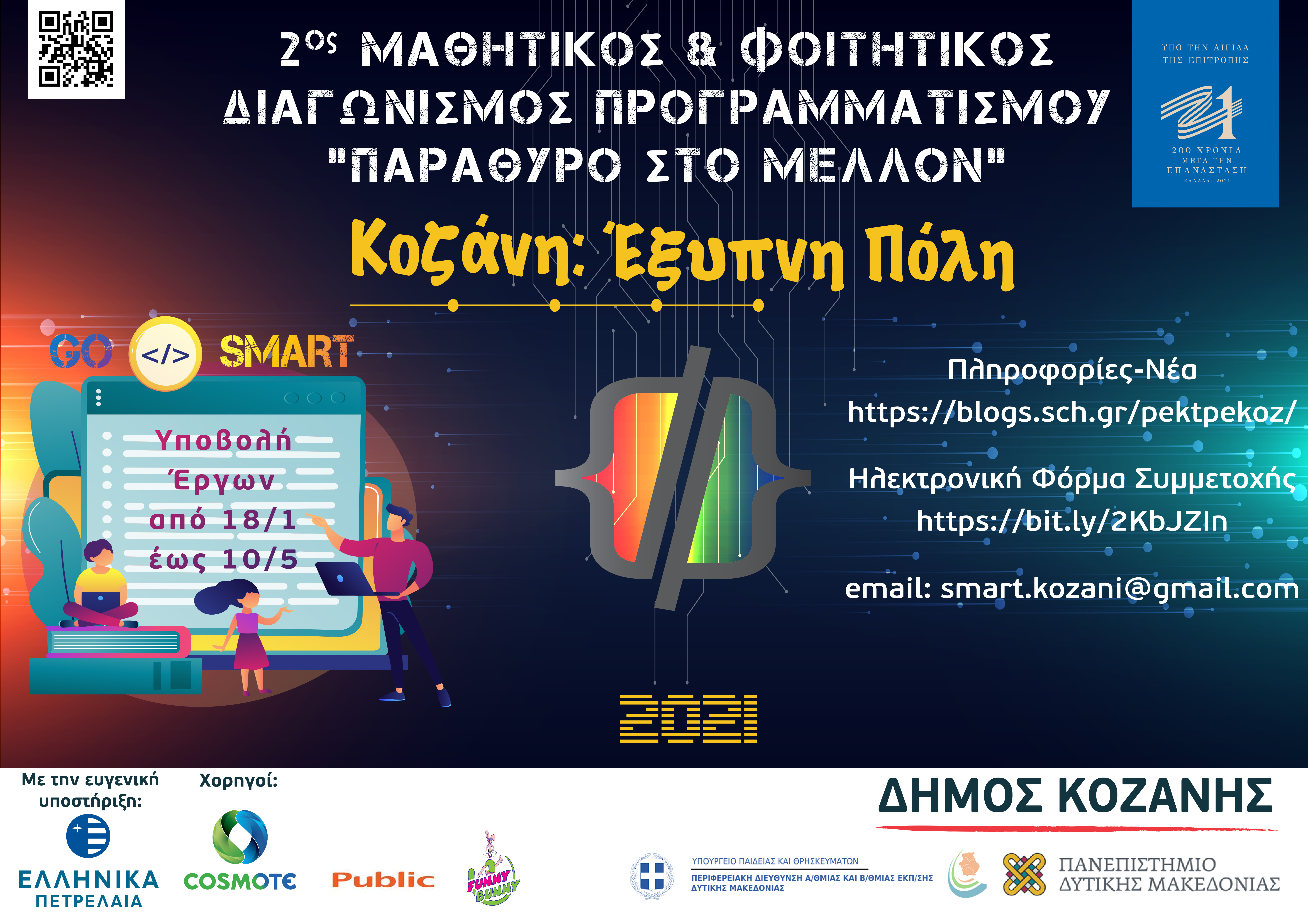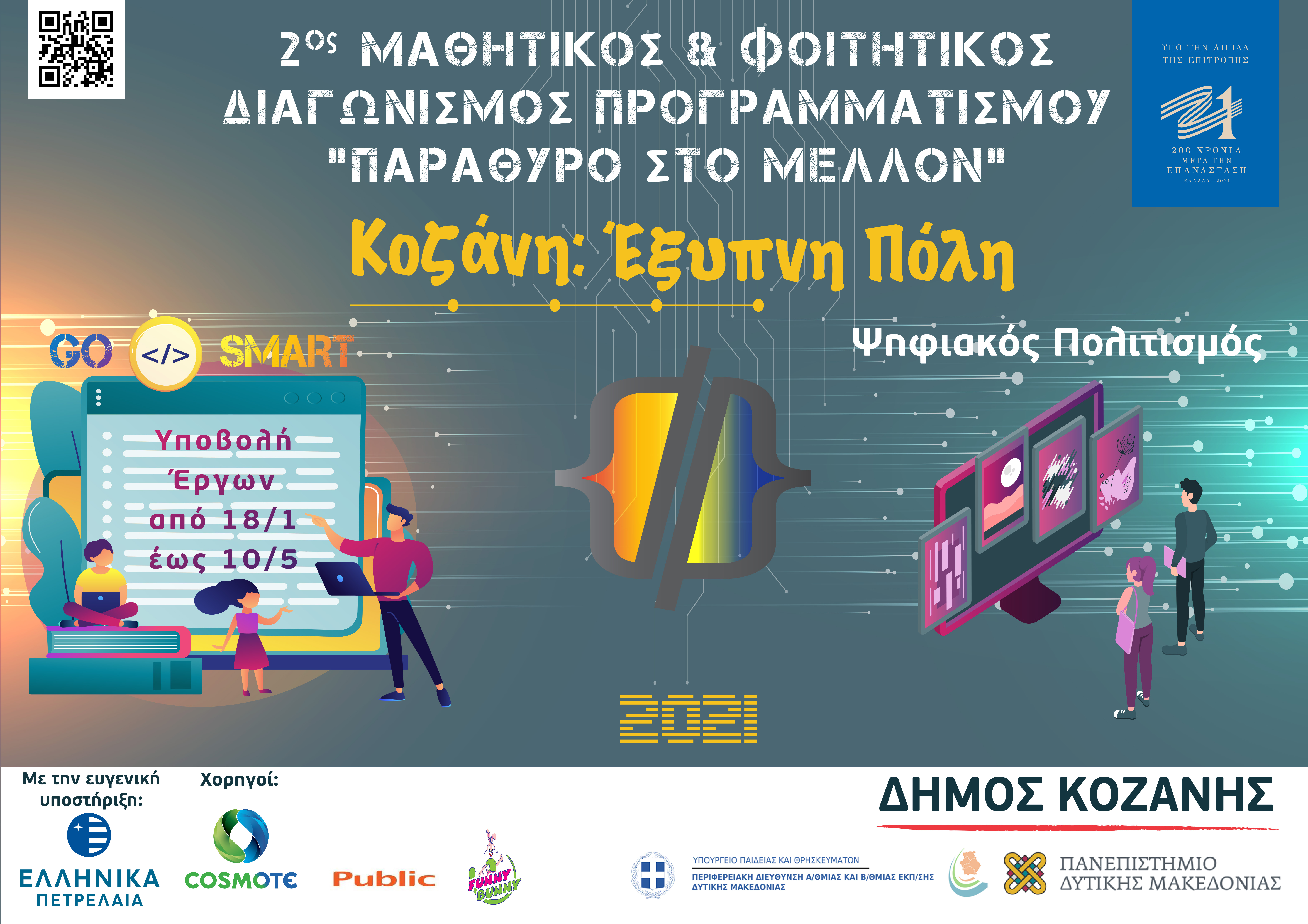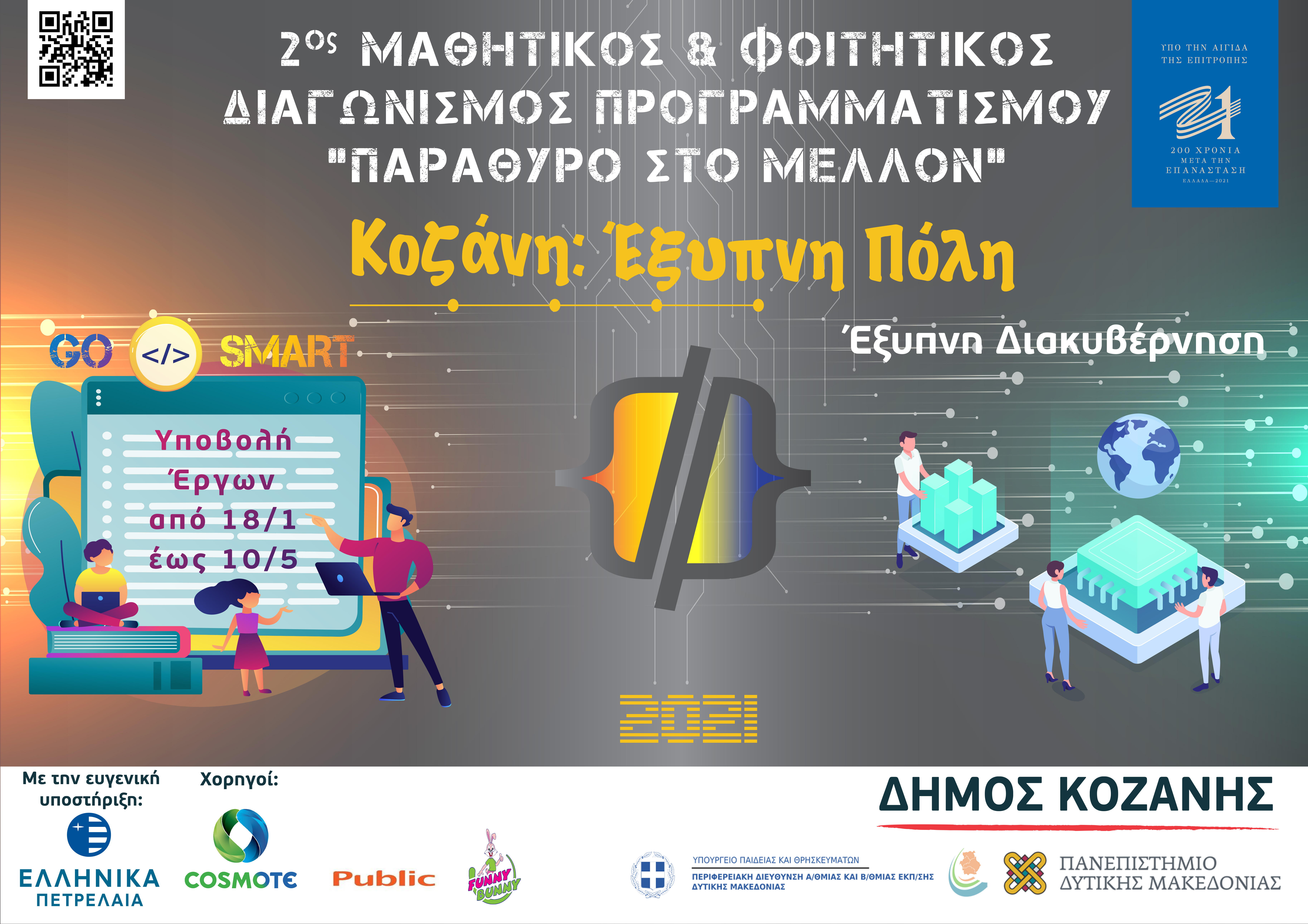 Υπό την αιγίδα της Επιτροπής Ελλάδα 2021 ο Μαθητικός & Φοιτητικός Διαγωνισμός Προγραμματισμού «Κοζάνη: Έξυπνη Πόλη - Παράθυρο στο Μέλλον»