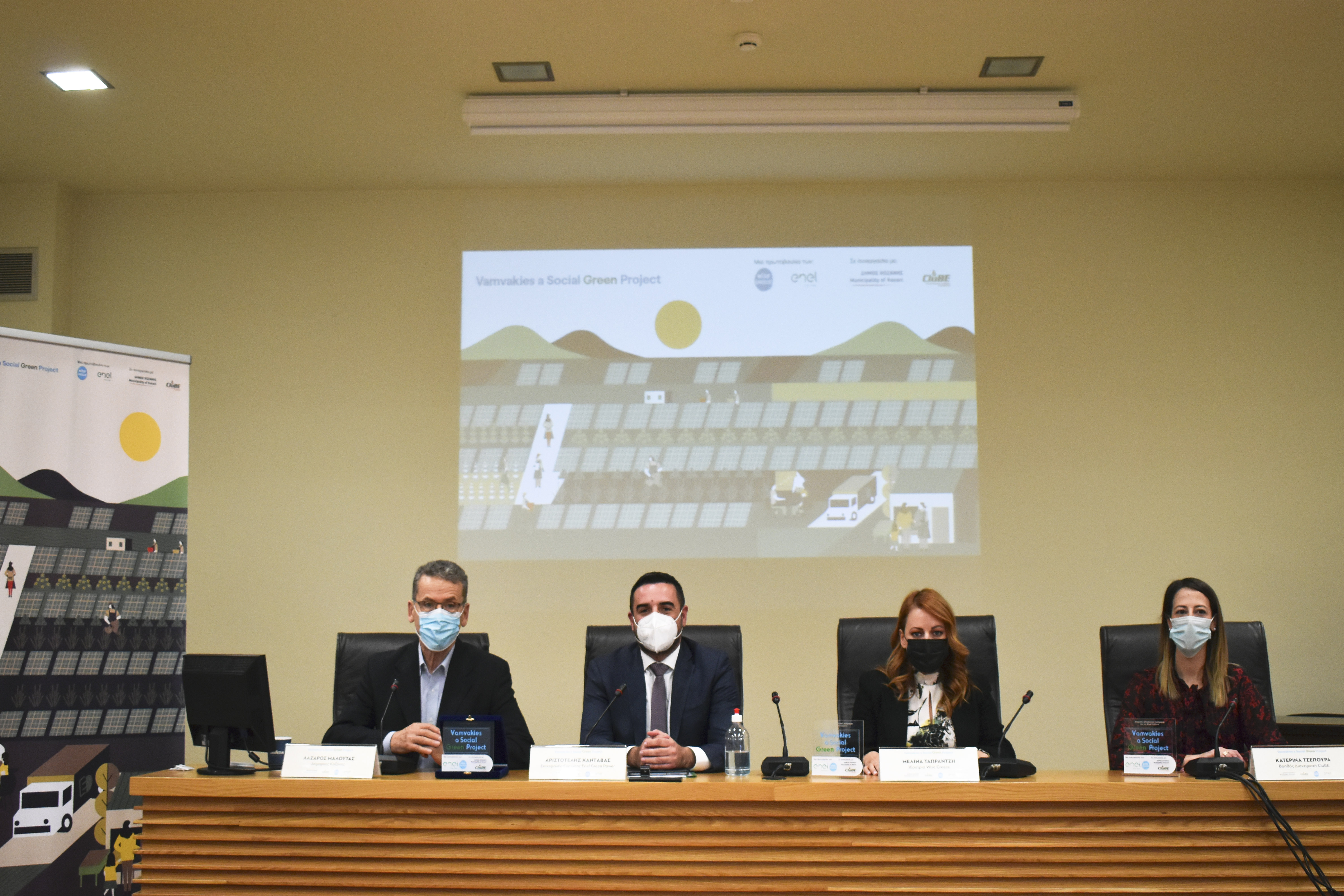 To καινοτόμο εκπαιδευτικό πρόγραμμα «Vamvakies a Social Green Project» που στοχεύει να βοηθήσει τους κατοίκους του Νομού Κοζάνης να ασχοληθούν με την αγροδιατροφική επιχειρηματικότητα, παρουσίασαν σήμερα σε κοινή Συνέντευξη Τύπου στην αίθουσα συνεδριάσεων Κοβεντάρειο ο Δήμαρχος Κοζάνης, Λάζαρος Μαλούτας, ο Αριστοτέλης Χαντάβας, Επικεφαλής Ευρώπης Enel Green Power και Πρόεδρος της SolarPower Europe, η Μελίνα Ταπραντζή, ιδρύτρια της Wise Greece, και η Κατερίνα Τσέπουρα, βοηθός διαχειριστή του Cluster Βιοοικονομίας και Περιβάλλοντος της Δυτικής Μακεδονίας (CluBE).
