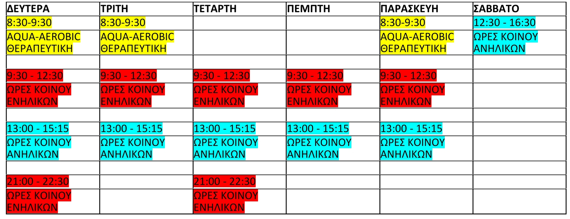 Πρόγραμμα Λιάπειου Κολυμβητηρίου για την περίοδο 2023-2024