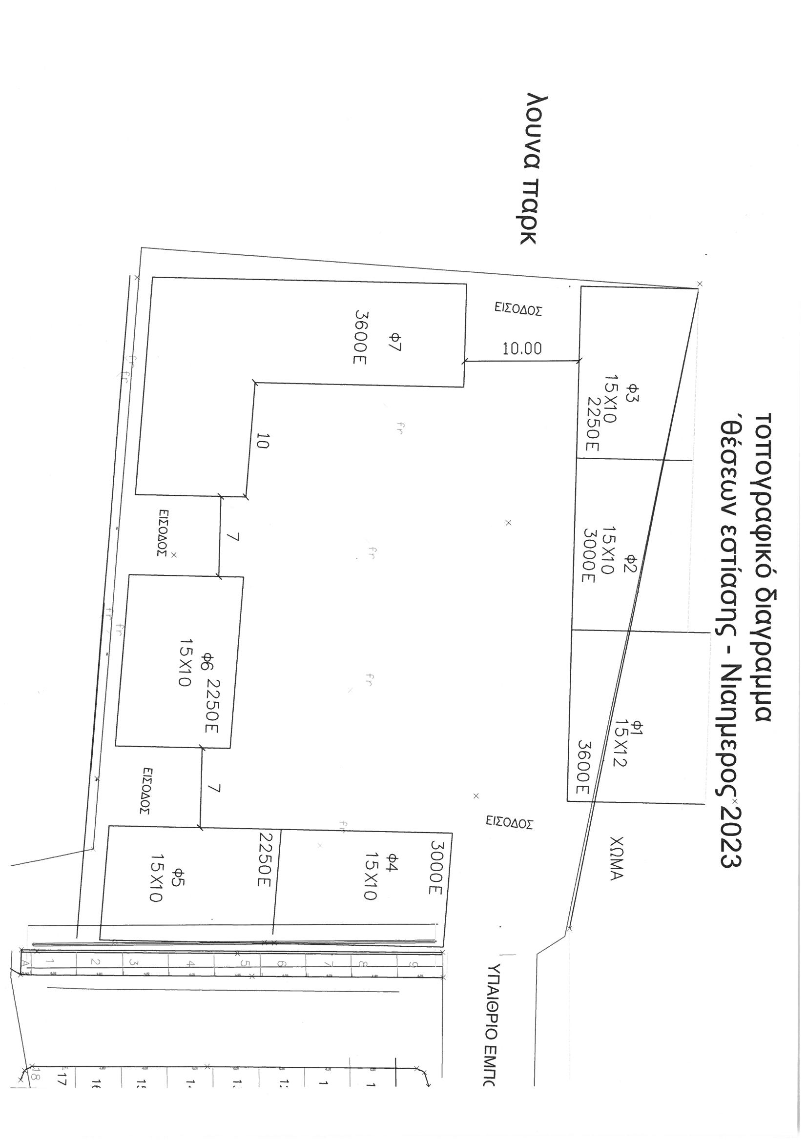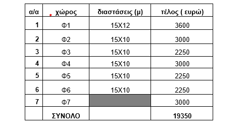Παρατίθεται πίνακας των διατιθέμενων χώρων και τα τέλη που αναλογούν