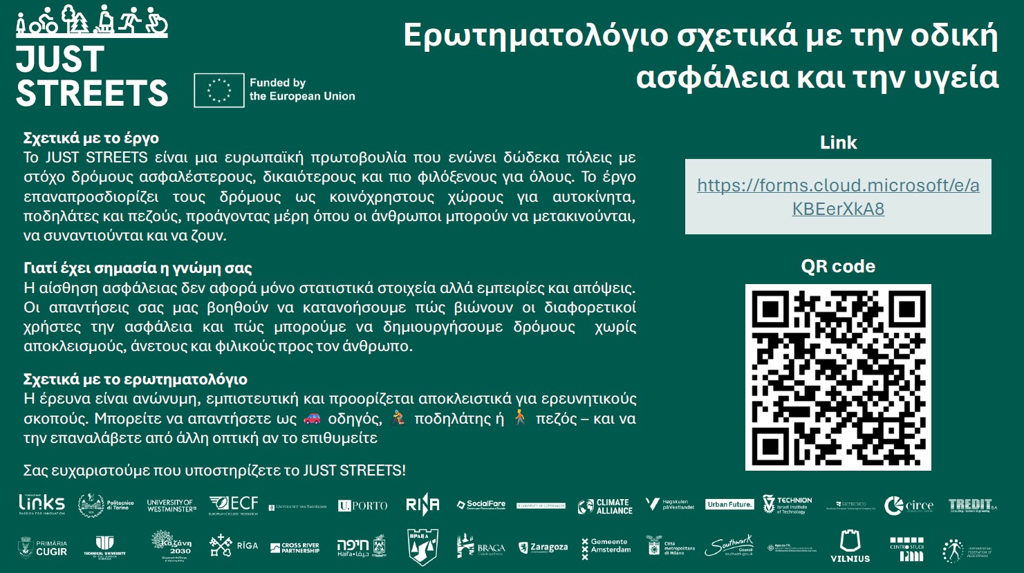 Συμπλήρωση ερωτηματολογίου σχετικά με την οδική ασφάλεια και υγεία για την πόλη της Κοζάνης, στα πλαίσια του Ευρωπαϊκού προγράμματος just streets